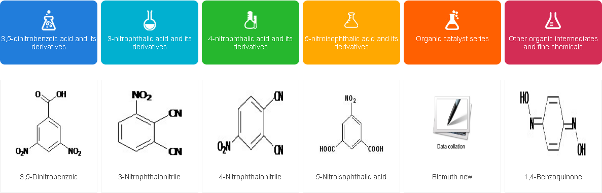 本公司是一家高科技开发、生产、经营、进出口、销售为一体的高科技研发企业。主营化工、生物技术的研究开发,本公司有专业硝化类产品,并有卤化、酯化、还原等反应生产线多条。公司本着“质量第一、信誉至上”的宗旨,凭着“求实创新、团结奉献”的企业精神,先后开发了显影剂、心血管等医药中间体、新型电子材料中间体、染料中间体、农药杀虫剂中间体、橡胶促进剂、胶片光亮剂、铜版添加剂以及多种有机合成中间体及精细化学品。具有稳定的国内外市场,同时在不断地开发新产品。目前公司的产品主要远销欧美、日本、韩国和印度等国家及地区。