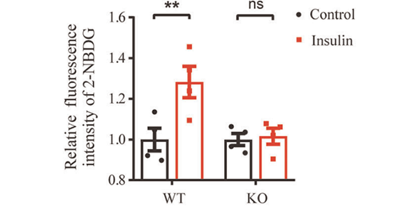3T3-L1 are incubated with or without media containing 10 nM insulin for 10 minutes. The media are changed to low-glucose DMEM containing 150 μg/mL 2-NBDG for 60 minutes at 37°C.