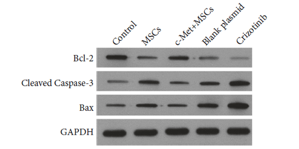 Western blot analysis of cleaved caspase 3, Bax, and Bcl-2 expression after serum-free culture for 72 h with or without Crizotinib.