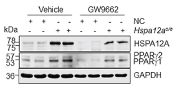 Protein expression was examined using immunoblotting with or without the treatment of GW9662.