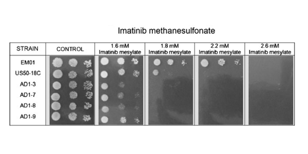 Differences in sensitivity of PDR-mutants to 3-BP, Imatinib methanesulfonate, Daunorubicin and Rhodamine 6 G. Minimal medium (YNB) with sucrose.
