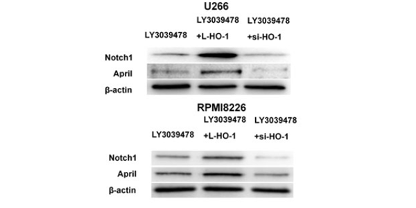 The Western blot analysis results show that LY3039478 inhibits not only Notch1 but also APRIL.