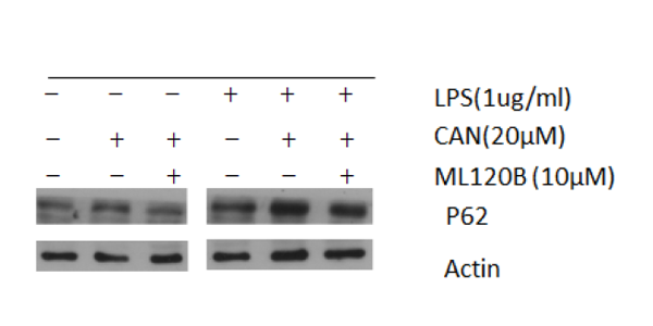 Effects of NF-κB inhibitor (10 μM MLN120B) is measured on p62 protein in LPS-induced RAW264.7 cells.