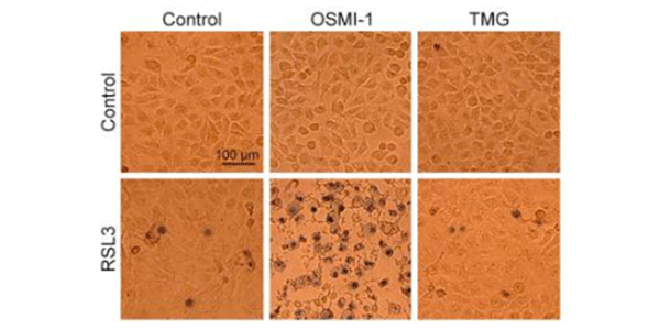 U2OS cells are treated with OSMI-1 (30 μM) or TMG (10 μM) for 12 h, and then induced with or without RSL3 (10 μM) for 6 h.