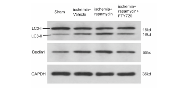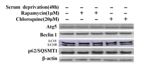 Evident LC3 turnover and increased level of Atg5 are found upon Rapamycin treatment, which indicate significant autophagy activation.