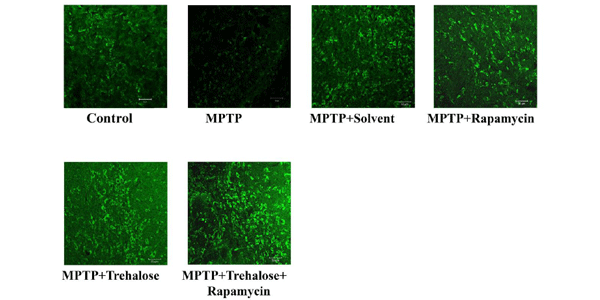 Effect of treatment with Rapamycin, trehalose, or their combination on tyrosine hydroxylase (TH) expression in the striatum in MPTP-induced mouse model of Parkinson’s disease.