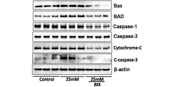 BiP inducer X (BIX; 25 mM) significantly reduces the expression levels of pro-apoptotic marker proteins including Bax, Bad, cytochrome-C, and caspase-1 in microglia cells.