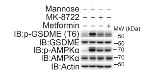 Cells were treated with mannose, MK-8722 (1 μM) or metformin (1 mM) for 6 h. GSDME was immunoprecipitated using anti-GSDME antibody, and then the phosphorylation levels of GSDME T6 were detected.