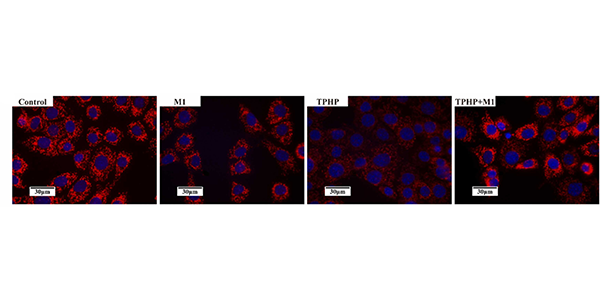 Mitochondrial fusion promoter M1 (M1; 1 μM;12 h) significantly attenuates TPHP-induced mitochondrial reduction and abnormal alignment in TM3 cells.
