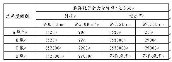 A 级静态和动态抗认毛度程根善渐都等同于ISO4.8级,B 级静态为 ISO5,动态 ISO7,C 级静态 ISO7,动态 ISO8,到了 D 级,级别已经比较低,因此没有动态要求,只有静态要求为 ISO8。