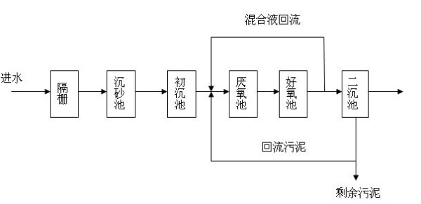 AO工艺将前段缺氧段和后段好氧段串联在一起,A段DO不大于0.2mg/关L,O段DO=2~4mg/L。