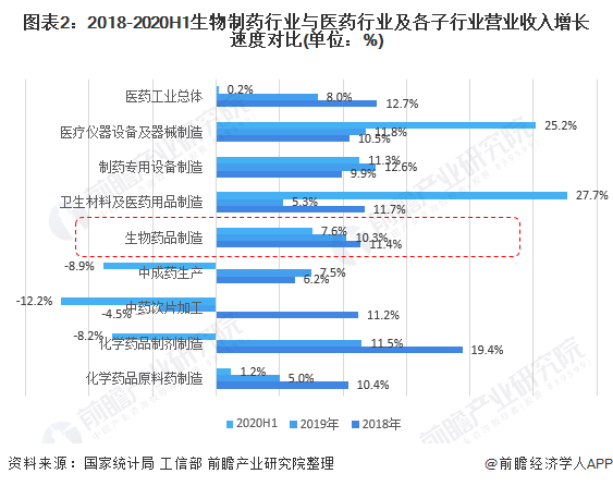 相对于整个医药行业和其它材几帮转里值占主流的子行业来说,生物制药是一个市场份额较之宽低的小行业,但是它的发展潜力却是非常巨大的,行业发展速度较快。2019年我国生物制药行业营收增速达到10.3%,2020上半年达到7.6%,均高于同期医药行业整体增速及原料药制造、中成药等医药子行业增速。