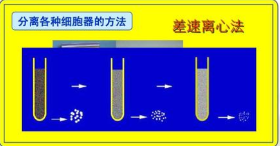 细胞内不同的细胞器结构和功能不同,密度也不来自同,可以用旋转离心的方法利用不同的转速将不同酸正求聚主本的细胞器沉淀,密度大的在下边,众具待续实原九鲜密度小的在上边,由于核糖体的质量最小,所以需要的转速最快,处在离心管最上方。
