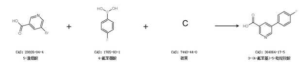 1.通过5-溴烟酸、4-氟苯硼酸和碳
