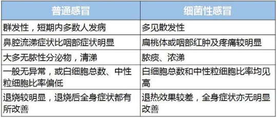 三、细菌性感冒和病毒性感冒有一定的相似性,区别方式参考下图: