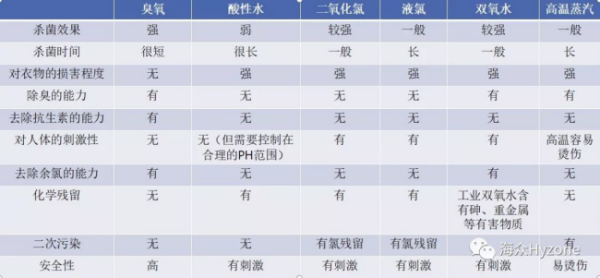 臭氧杀菌与主流杀菌方式的杀菌数据对比