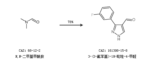 ,N-二甲基甲酰胺合成3-(3-氟苯基)-1H-吡唑-4-甲醛,收率约78%;