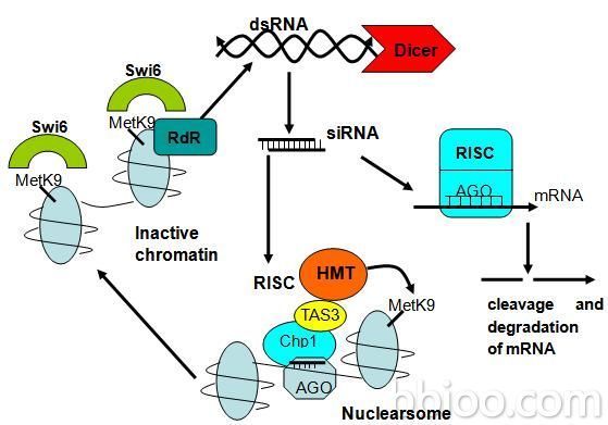 6异染色质可以从两个方面参与基因调控:一是通过一种与“异染色质化”有关的过程,使多数大片段的染色质结构关闭;二是通过稳定更多的已开放的染色质结构来避免其关闭结构状态的存在。
