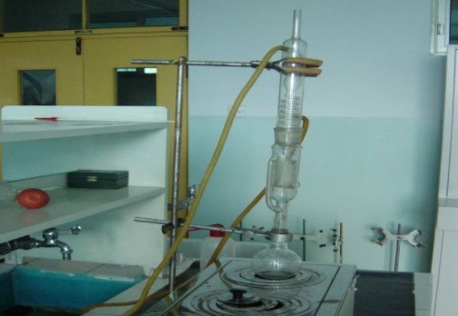 2、索氏提取器由提取瓶、提取管、冷凝器三部分组成的,提取管两侧分别有虹吸管和连接管,各部分连接处要严密不能漏气。