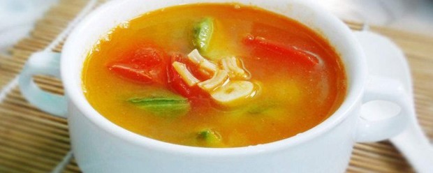 3、过滤去西红柿、辣椒面、姜丝,一碗澄清的酸辣汤底做好了。