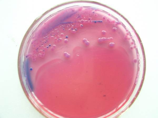 3、36±1℃培养18~24h,选用有30~200个菌落的平板,计数平板上出现的典型大肠杆菌菌落。大肠杆菌典型菌落为蓝绿色,其它细菌为无色或黄色菌落。