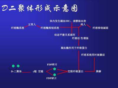 D-D二聚体是机体凝血过程可能会产生的一种二聚究食坚体复合物。正常机体中一般不产生或产生量极少。