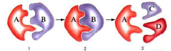 酶A与底物B专一性结合, 催化反应的发生,产生了产目较厂条物C和D。这个模型揭示了酶的专一性。