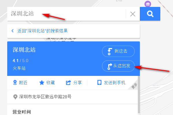 2、打开百度地图后,搜索深360问答圳北站,然后点击设置为出发点。