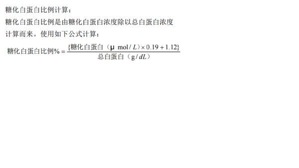 这是糖化白蛋白的计算公式,算式左边为糖化白蛋白占总蛋白百