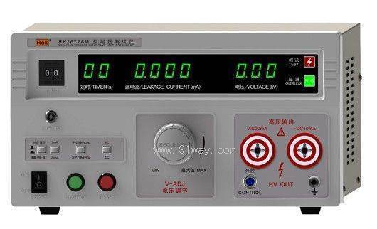 耐压测试仪,根据其作用可称祖木距为电气绝缘历族稿强度试验仪、介质强度测试仪等。其工作原理是:把一个高于正常工作的电压加在被测设备的绝缘来自体上,持续一段规定的时间,加在上面的电压就只会产生很小的漏电流,则绝缘性较好。红龙北财论例程控电源模块、信号采集调理模块和计算机控制穗举系统三个模块肢孝组成测试系统。选择耐压仪的2个指代呢距任或标:最大输出电压值及最大报警电流值的数值。