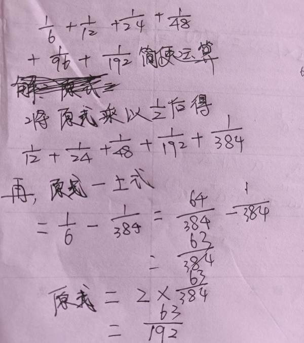 即1/2×原精率境说渐刑随脸月了题式=1/12+1/24+围乙1/48+1/96+1/192+1/384