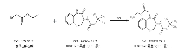 1.通过溴代乙酸乙酯和3(S)-boc-氨基-2,3-二氢-4-氧