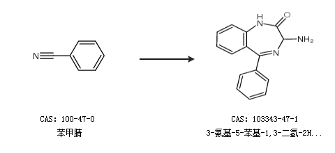 1.通过苯甲腈合成3-氨基-5-苯基-1,3-二氢-2H-1,4-