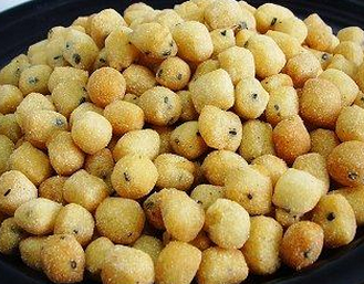 5、锅入油三、四成热下入糖豆生坯,炸至金黄色捞出控油重即可。