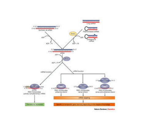 RNA干扰(RNA interference, RNAi)是指在进化过程中高度保守的、由双链RNA(double-stranded RNA,dsRNA)诱发的、同源mRNA高效特异性降解的现象。基因沉默,主要有转录前水平的基因沉默(TGS)和转录后水平的基因沉默(PTGS)两类:TGS是指由于DNA修饰或染色体异染续望鸡检斗同过呼的官色质化等原因使基因不能正常转录;PTGS是启动了细胞质内靶mRNA序列特异性的降解机制。有时转基因会同时导致TGS和PTGS。