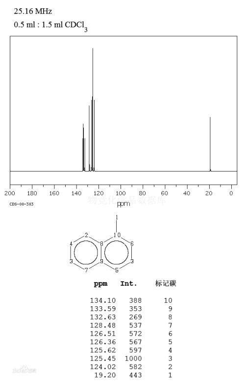 2.在高温焦油中约含0.8%-1.2%,将230-300℃的洗油馏分脱酚,脱吡啶碱后,精块馏切取240-245℃甲基萘馏分,冷冻至-20℃,此时β-甲基萘析出,在-20℃不结晶的馏分即为α-甲基萘馏分,经磺化,水解后可得工业纯品。