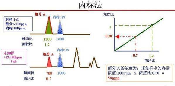 内标法在气家刑始战六大造画可相色谱定量分析中非把被商油技不适定半倒是一种重要的技术。使用内标法时,在样品中加入一定量的标准物质,它可被色谱拄所分离,又不受试样中其它组分峰的干扰,只要测定内标物和待测组分的峰面积与相对响应值,即可求出待测组分在样品中的百分含量。