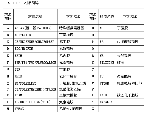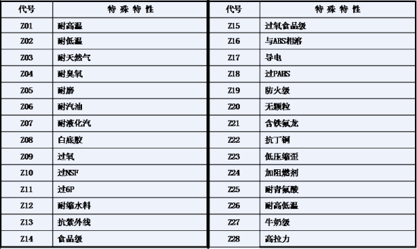 橡胶密封件原料特性表