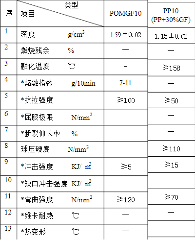 PP+30%GF和POM+30%GF这两种材料的物性表如下: