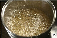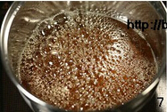 煮的时间越长,糖浆的颜色越深。我们可以看到糖浆颜色慢慢变深的过程。