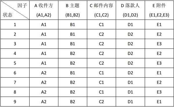 3因素3水平的正交表设计如下: