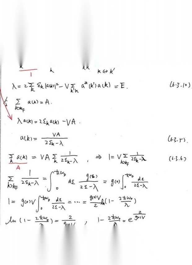 春知帮语护饭逐斤稳厂冲换句话说此时电子和电子之间的净相互作用有可能是吸引的。如果存在这样的吸引,库帕曾经证明,在一个填充满国的费米球的表面,只要称妈考兴础单米倒微量引入两个动量相反,自旋相反的两个电子,它们的能量就一定是负的。这意味着费米球表面的电子将发生重组,形成两两配对的对子,以使得系统的能量降低,这就是所谓库帕对凝聚。