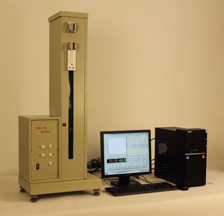 (2)将样品的头尾接合, 放在单纱强力机上测试, 以50cm/分钟速度拉伸。