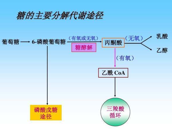 机体内糖的代谢途径主要有来自葡萄糖的无氧酵解、有氧氧化、磷酸埋蔽山戊糖途径。