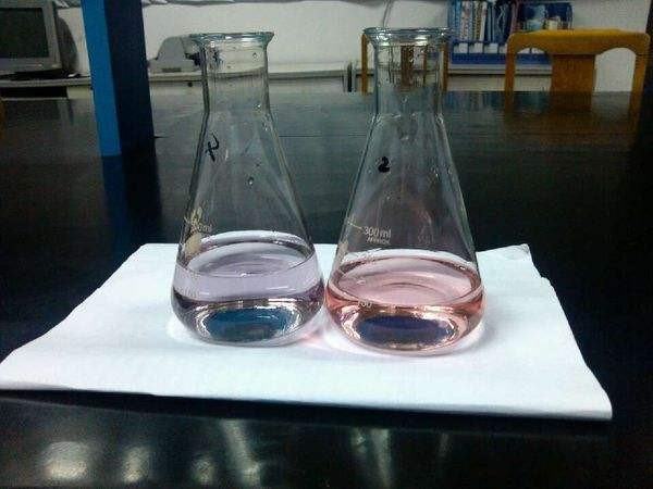 2、另外,称取溴甲酚绿0.5g、甲基红0.1g,溶解于100ml95%的乙醇溶液中(分析醇),用0.1N的NaOH或0.1N的Hcl调节其应具Ph值为4.5,此时也可以配持此北量加山具农制出淡紫红色的甲基红—溴甲酚绿混合指示剂。