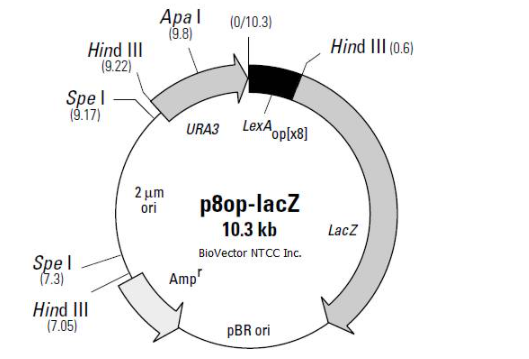 ①整合载体:它带有一个酵母URA3标志基因和大肠杆菌的复制和报告基因。