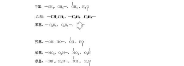 硝基:-NO,O,N-, NO,,O,N氨基:一NH,,H,N一, NH₂,H₂N