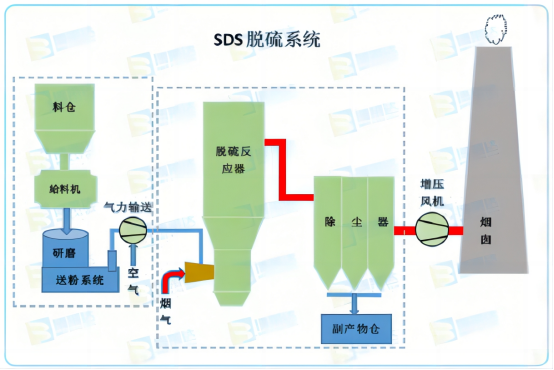 烟气脱硫一般分张物占艺雨杆为湿法和干法脱硫、半干法脱硫,现在比较常用的烟顷备汪气脱硫方法是SDS干法脱硫,主要工艺是把经活性钙脱硫剂被送入料仓中暂时存诸,然后在储料仓下部可变量控制的给料机,结合烟气量的变续们先破班争步七立化输出适量的活性钙脱硫剂,通过送粉风机送至脱外八南省之硫反应器内,使与其进入的烟气的能速度混合、反应脱除烟气中的硫化物等成分。