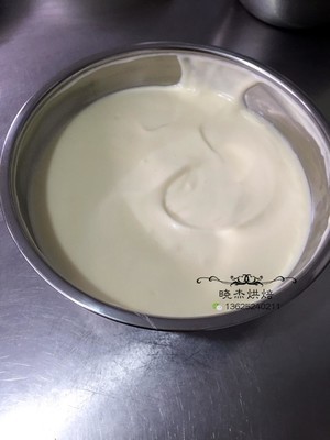 蛋白分两到三次加入蛋黄糊中,盾余内翻拌均匀,不能画圈式搅拌,不懂翻拌的可以搜网上视频有很多教程。戚风面糊就做好了,很细腻吧