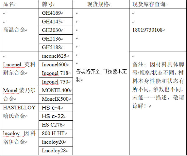 国外的高温合金叫包含inconel系列 incoloy系列 Hastelloy系列